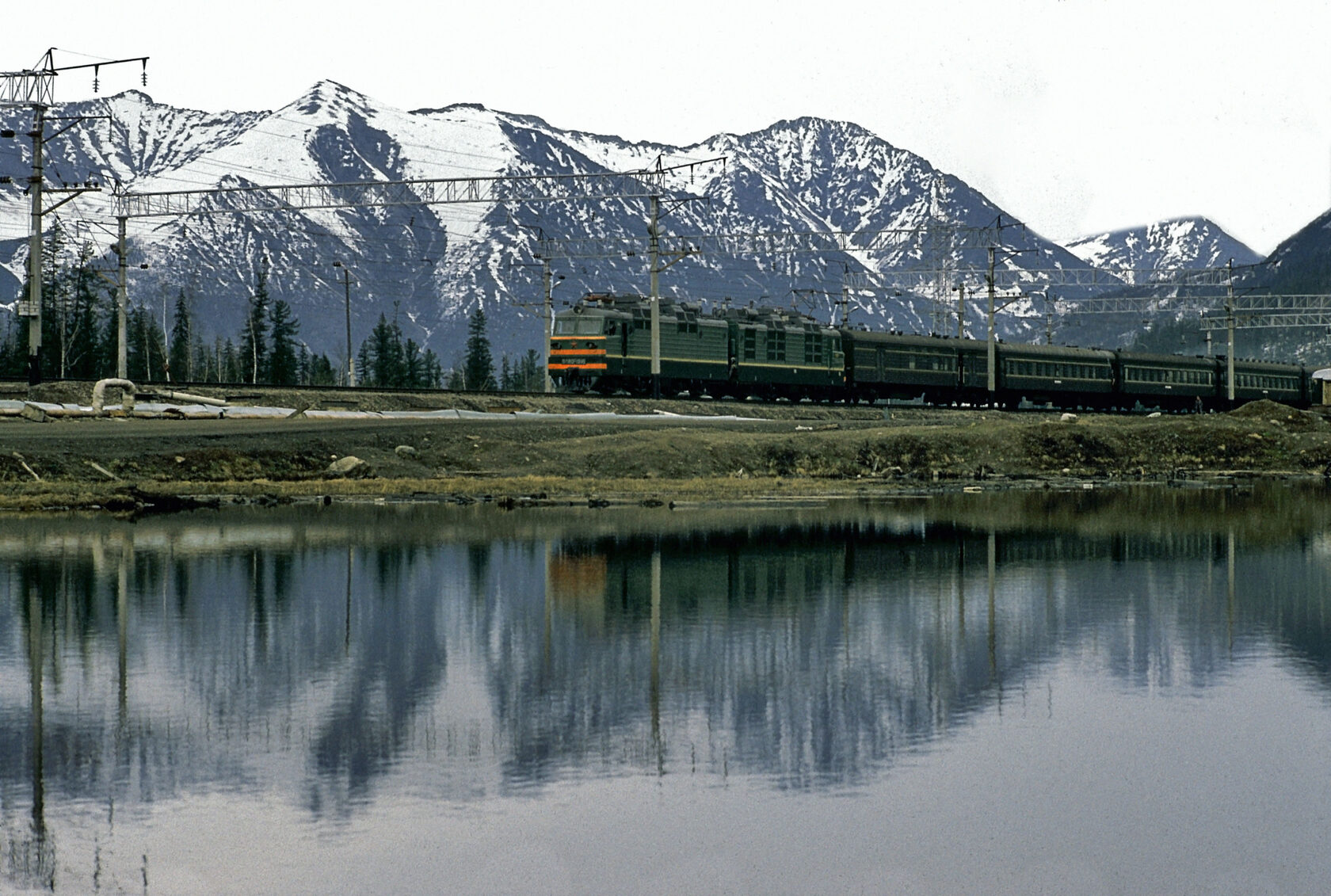Поезд идет по Западному участку Байкало-Амурской магистрали в Иркутской области, 1986 г. РИА Новости